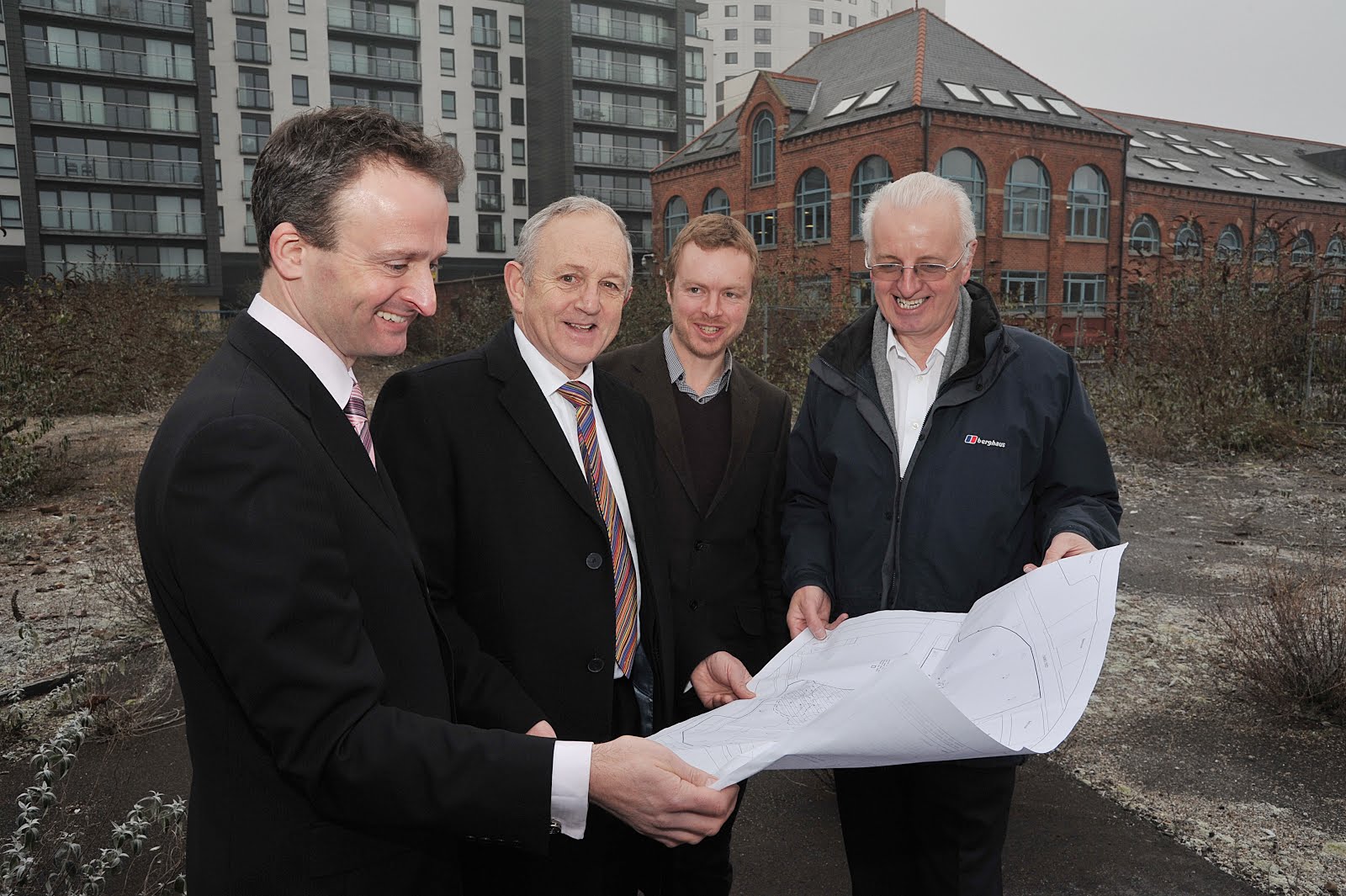 Ben Rimmington, Leeds City Region LEP Director; Keith Wakefield, Leader of Leeds City Council; Paul Ellison and Peter Connolly of Yorkshire Design Services examine plans for a data centre